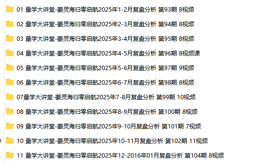 量学大讲堂姜灵海-归零启航-主控实战操盘学2025年1-12月第93-104期复盘分析25年合集